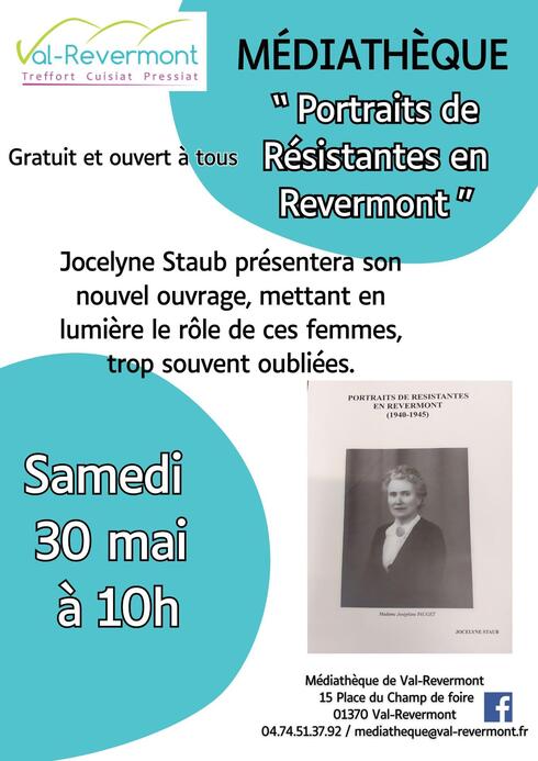 Jocelyne Staub (co-auteure de "Le Revermont dans la Résistance") présentera son nouvel ouvrage, une mise en lumière sur le rôle de ces femmes résistantes.