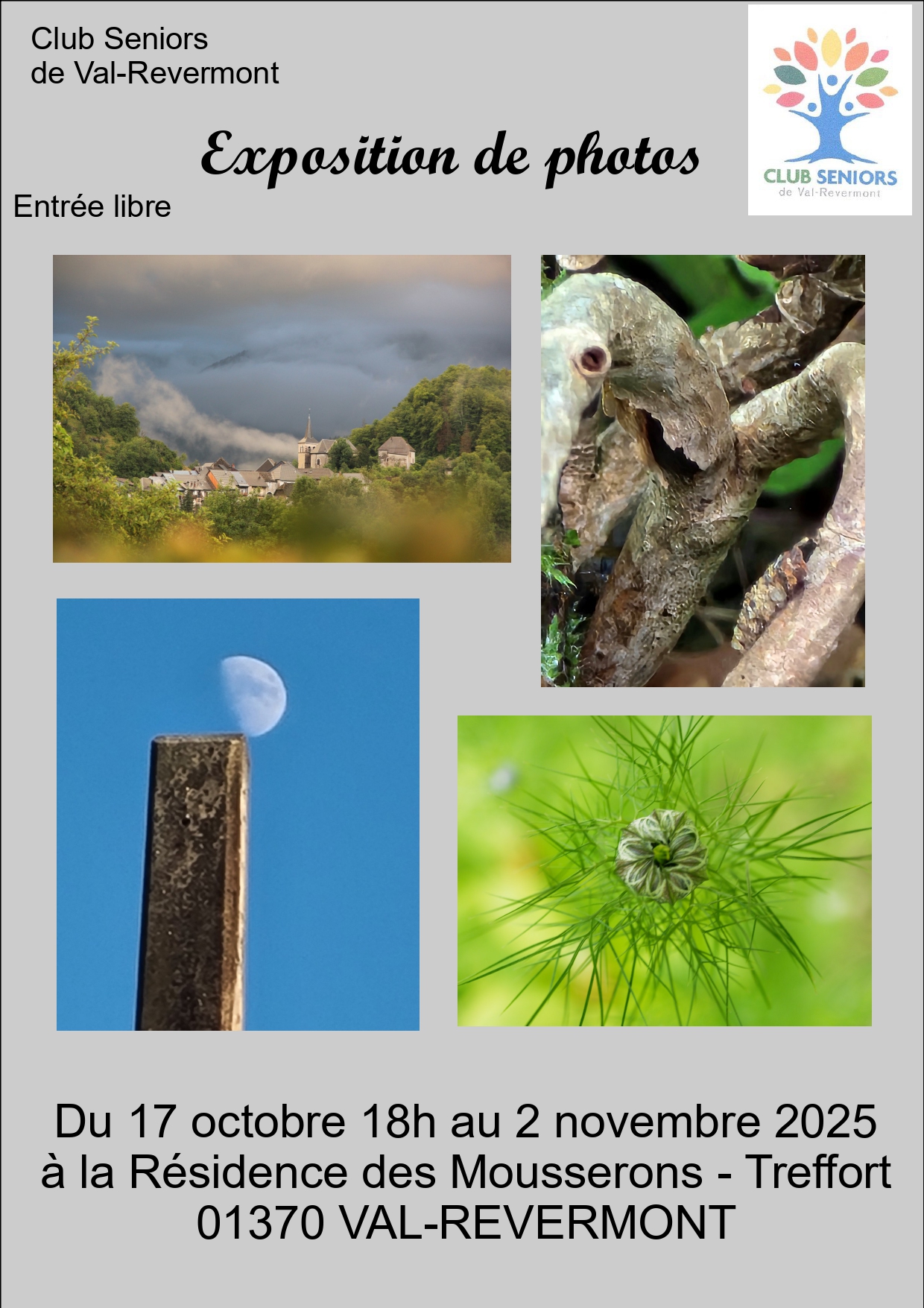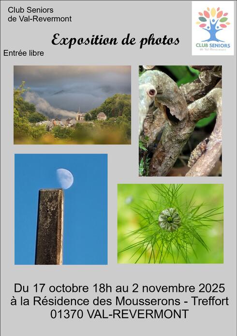 Le Club Séniors organise une exposition de photos du 17 octobre au 2 novembre 2025 à la Résidence autonomie des Mousserons.