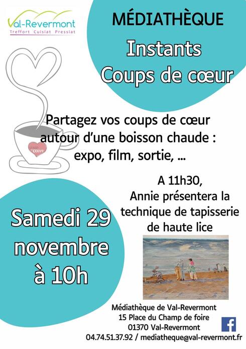 Venez partager vos coups de cœur autour d'une boisson chaude à la Médiathèque le 29 novembre à partir de 10h.