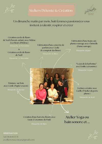 L'association Eveillez-vous vous propose des ateliers détente et création du 23/11 au 28/06/2026.