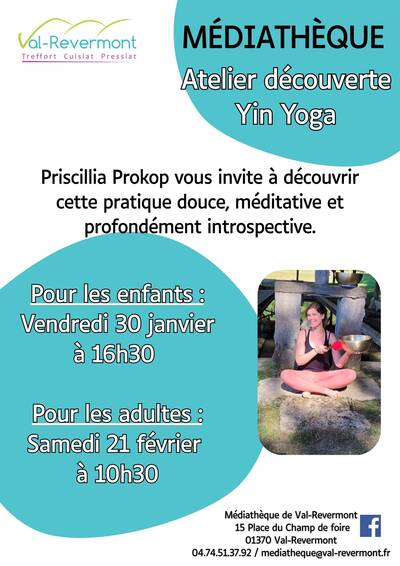 Priscillia Prokop vous invite à découvrir la pratique du Yin Yoga le 30/01 pour les enfants et le 21/02 pour les adultes.
