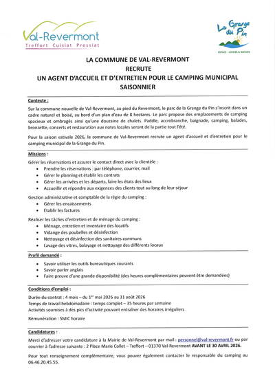 Recrutement d'un agent saisonnier pour le camping.