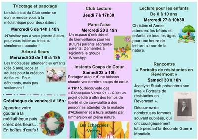 Programme de la médiathèque en mai